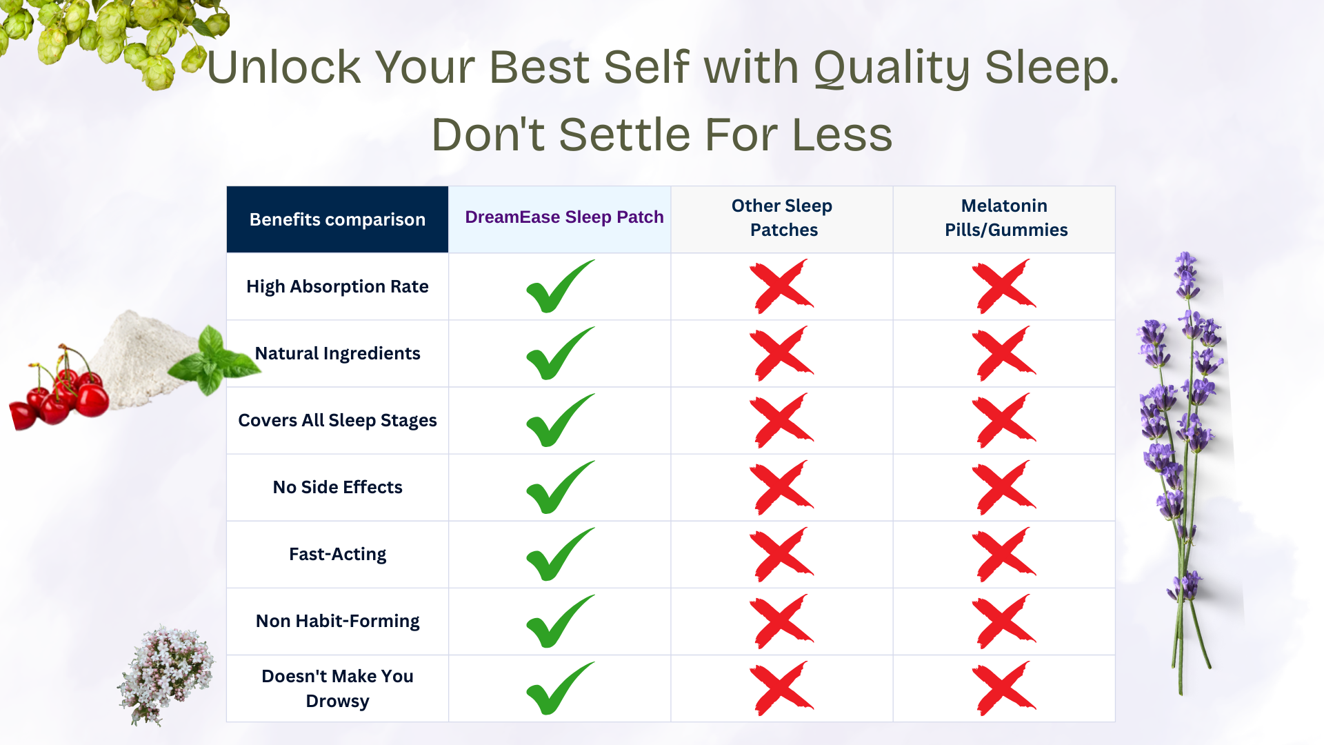 Each patch gently releases 🌿 melatonin and calming herbal extracts overnight, helping you 😴 fall asleep faster, 💤 stay asleep longer, and 🌅 wake up refreshed — without grogginess.